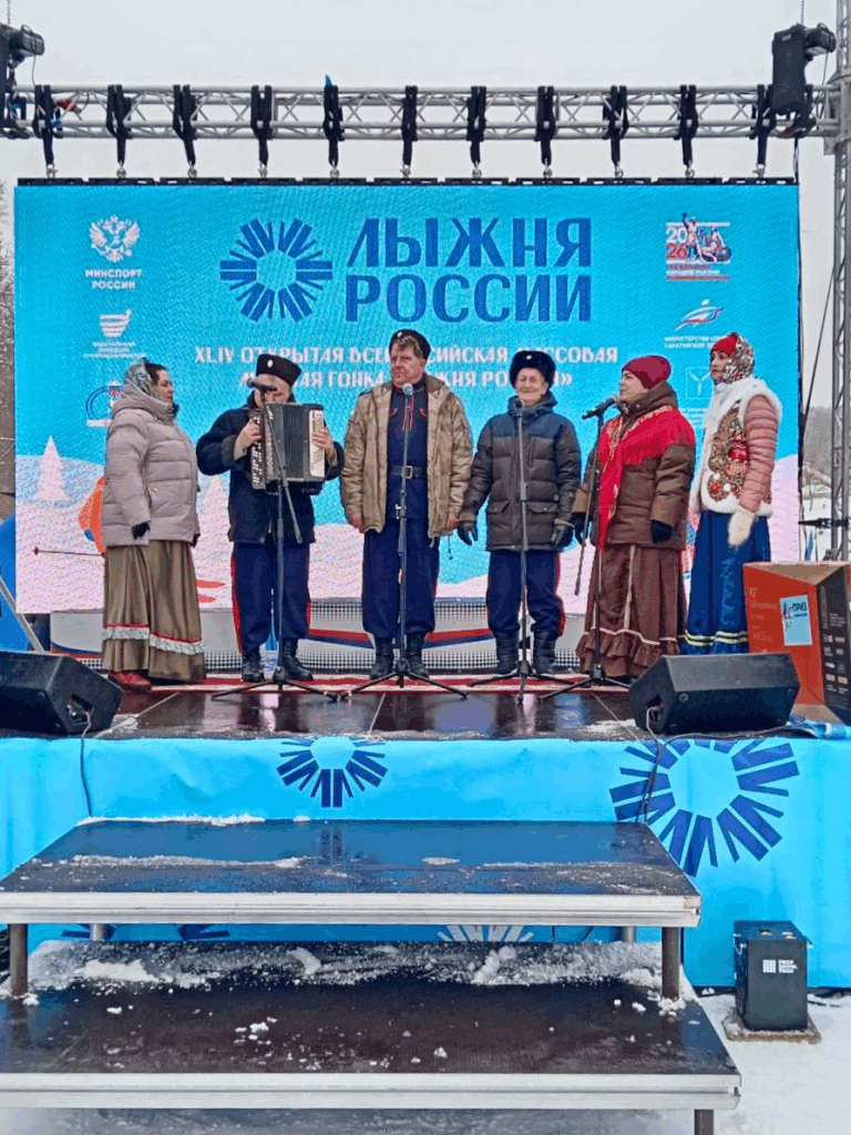 Ансамбль казачьей песни «Спас» МУК «Клуб «Электроник» принял участие в торжественном открытии XLIII Открытой Всероссийской массовой лыжной гонки «Лыжня России» 2026.