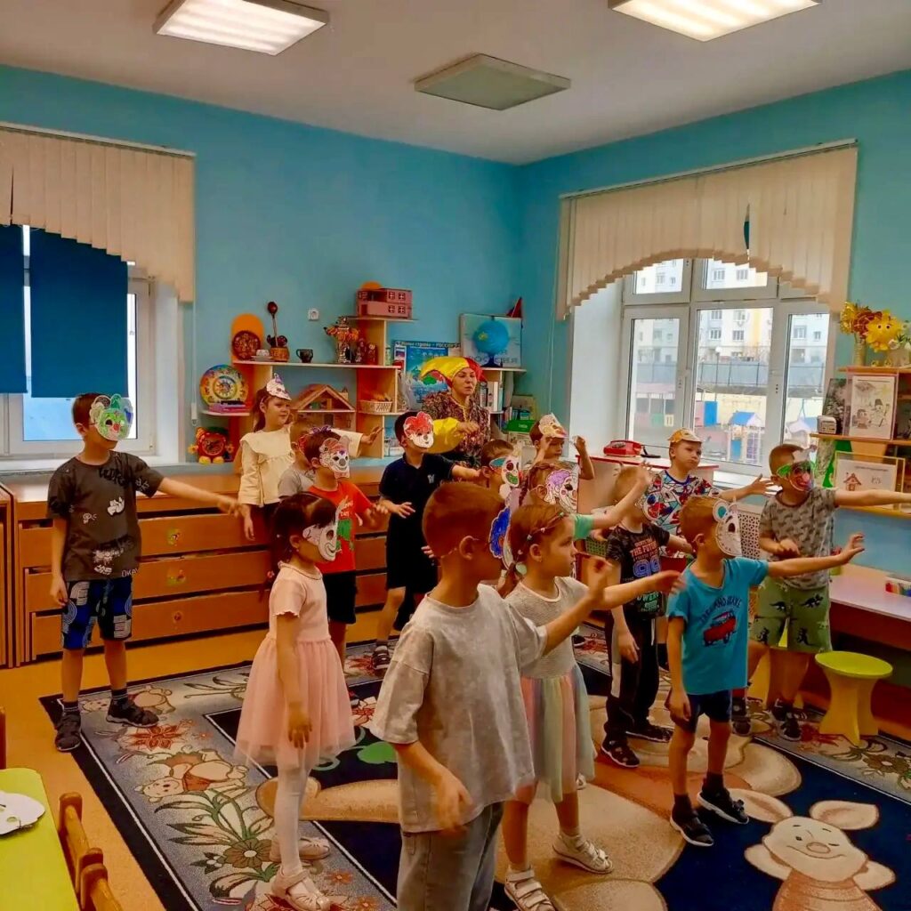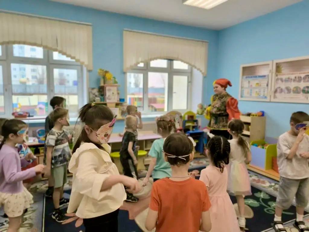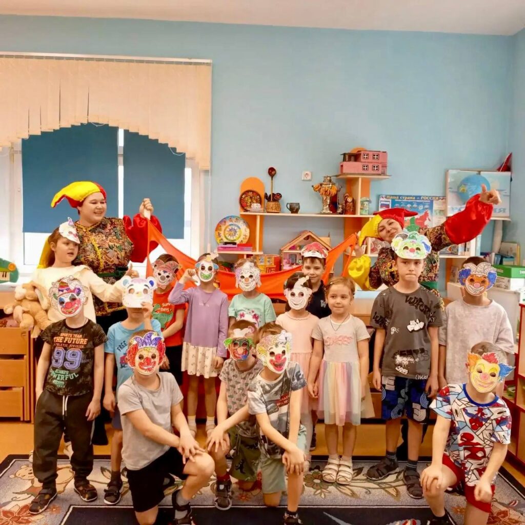 Ребята с увлечением разукрасили собственные смешные маски — каждая получилась яркой и неповторимой. А затем в этих масках танцевали и участвовали в весёлых играх.