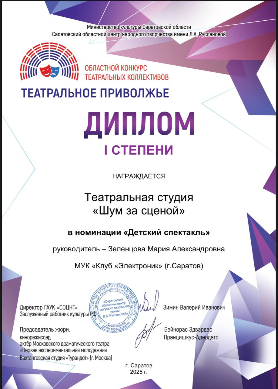 Театральная студия «Шум за сценой» МУК «Клуба «Электроник» получила высокую оценку жюри на Областном конкурсе театральных коллективов «Театральное Поволжье»....